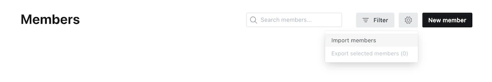 Under the Ghost Admin members settings, select the import option from the settings menu.